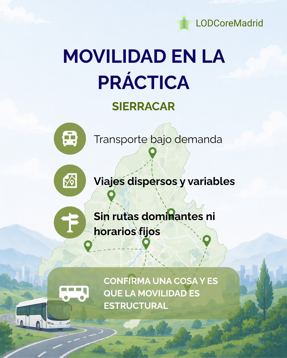 La importancia del transporte en los municipios pequeños no es solo un resultado teórico. También se observa en la movilidad real de zonas rurales de la Comunidad de Madrid, como la Sierra Norte, donde muchos municipios que tienen menos de 3000 habitantes.