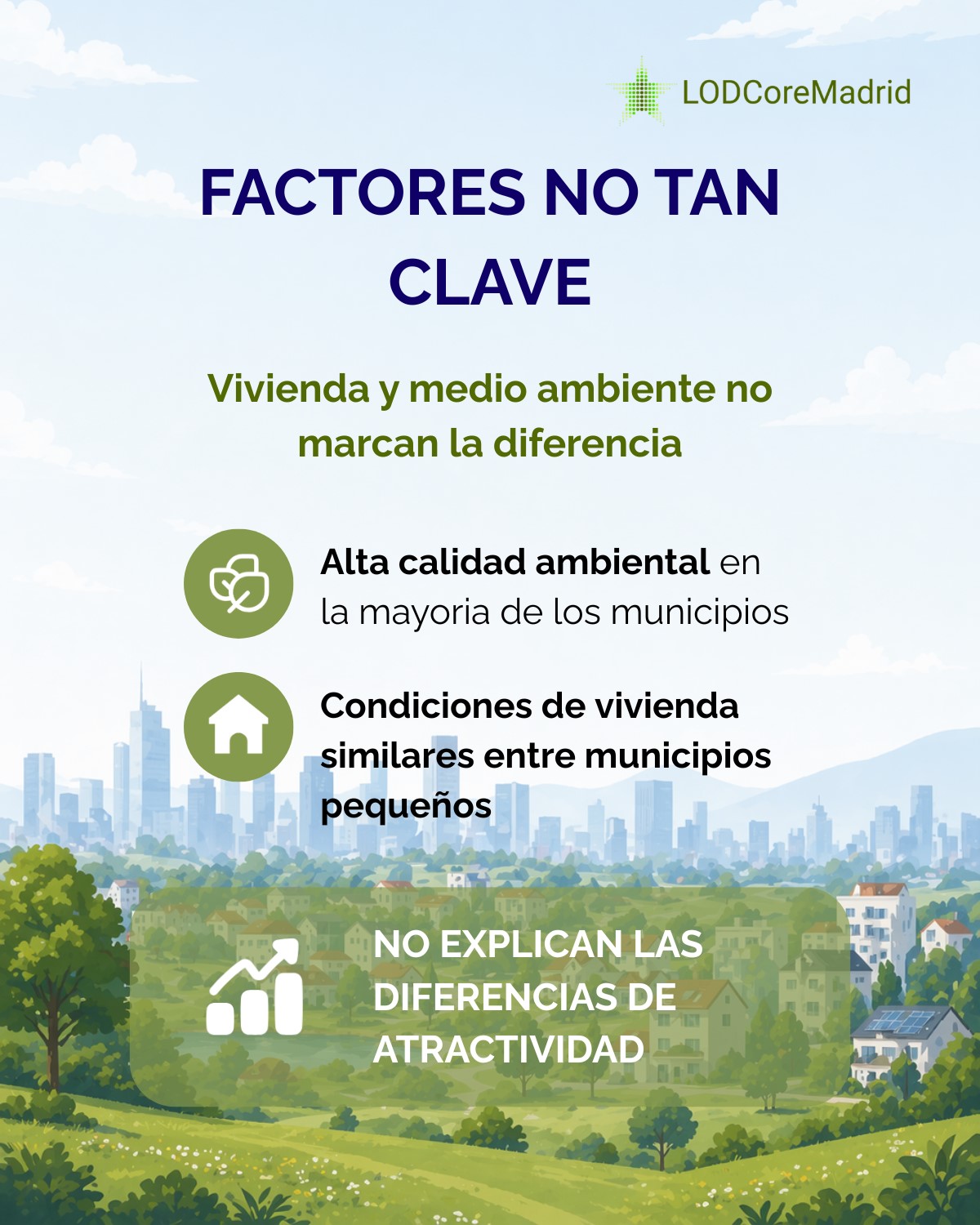 La atractividad territorial refleja cómo los ciudadanos perciben las fortalezas y debilidades de los lugares donde viven. No se trata solo de medir la disponibilidad de servicios o infraestructuras, sino de entender cómo estos factores influyen en la calidad de vida y en la capacidad de un territorio para retener y atraer población. En la Comunidad de Madrid, esta cuestión adquiere especial relevancia por su diversidad territorial: conviven realidades urbanas densamente pobladas con entornos rurales de baja densidad, ambos profundamente conectados entre sí. Analizar la atractividad permite, por tanto, comprender cómo se distribuyen las oportunidades y las limitaciones en este espacio regional y qué factores condicionan la cohesión entre sus distintos municipios.