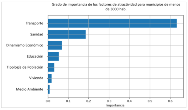 Estos resultados confirman que la sanidad, está fuertemente condicionada por la capacidad de desplazamiento, reforzando el papel central del transporte como factor clave de la atractividad territorial.
